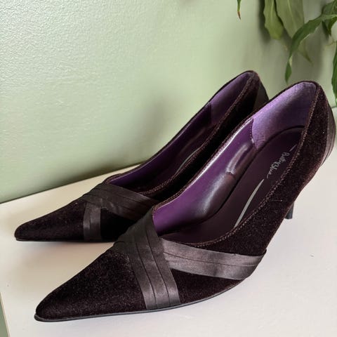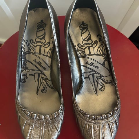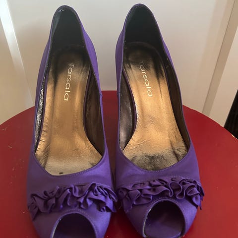 Myyntiin siniset "sametti" pintaiset korkokengät joissa korkea korko, sivussa tähti.