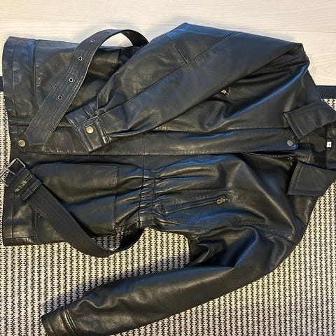 Paksu nahkatakki, tarkenee talvellakin.