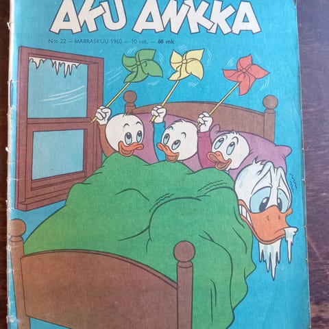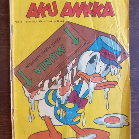 Suhteellisen hyvin säilynyt vanha Aku Ankka numero 30 vuodelta 1963. Joku pikku tahra kannessa näkyy kuvassa. Lehti kuitenkin jo 63 vuotta vanha.