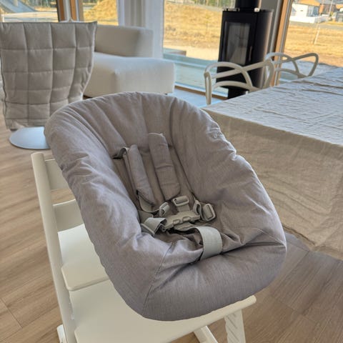 Myydään Stokke tripp trapp syöttötuolin vauvan istuinosa, jossa pehmustettu harmaa päällinen ja turvavaljaat. Sopii käytettäväksi tripp trapp syöttötuolin päällä. Settiin kuuluu myös lelutanko/kaari. Kahteen asentoon säädettävä.
