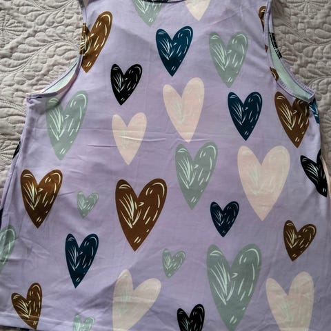 Kainalo-kainalo 44 cm, olka-helma 43 cm. Materiaali 92% puuvillaa ja 8% elastaania. Savuton ja eläimetön koti.