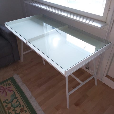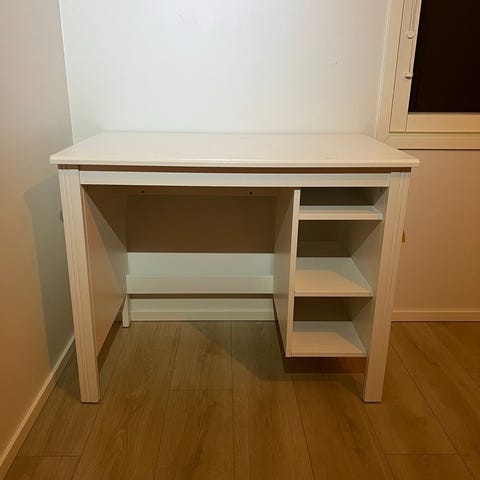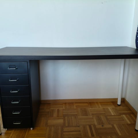 Itse maalattu tumman vihreällä kalustemaalilla oleva työpöytä.ehyt mutta kannessa pikkujälkiä ja ovesta ja toisesta sivusta jäänyt vähän paistaan edellinen väri.haku kempele