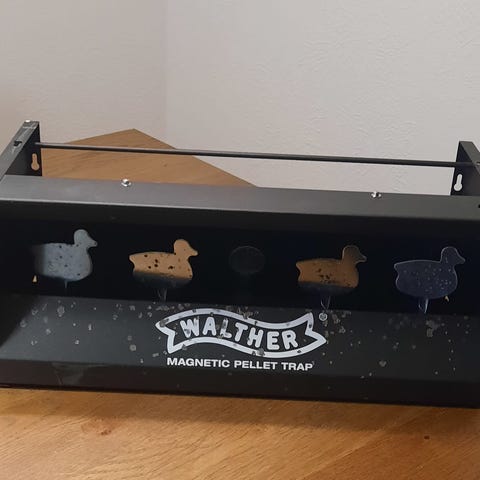 Koteloitu maalitaulu ilmakiväärille tai softgun-aseille. Edessä on kolme pyöreää puna-valkoista taulua, jotka on kiinnitetty jalustoihin. Taulujen takana on musta verkkotausta, joka kerää ammukset ja vähentää kimpoamista. Rakenne on muovia ja metallia, väri pääosin musta. Soveltuu sisä- tai ulkoharjoitteluun, kun taulu sijoitetaan turvalliseen ampumapaikkaan ja käytetään aseen tehoon sopivia ammuksia.