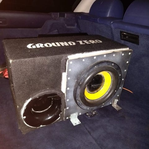 Siitä jo legendan maineessa oleva subbari seuraavalle. Elementin kunto hyvä ja kohtuu jäykkäkin vielä. Kytky tällähetkellä 1 ohnin kytkyssä. Kotelo erittäin jykevä 30mm vaneria. Viri muistaakseni 27hz. Kotelon mitat 81x51x35.