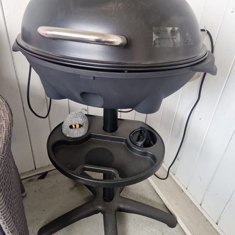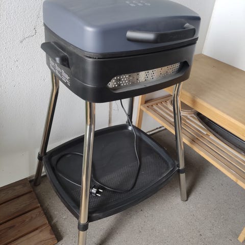 Cello Box sähkögrilli jalustalla. Grillissä on kannellinen rakenne ja ritiläpinta grillaukseen. Sähköjohto termostaattisäätimellä sijaitsee sivussa. Jalustassa on alataso tarvikkeiden säilytykseen. Väri on musta, ja runko koostuu metallisista jaloista sekä muoviosista. Soveltuu parvekkeelle tai pihalle sähkögrillaukseen. Nouto Valkeakoskelta tai kuljetus lähialueelle neuvoteltavissa. Käteismaksu.