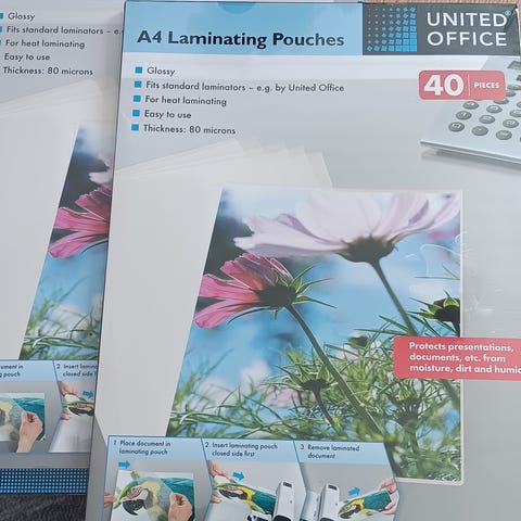 Laminointi kone ja taskuja paljon
