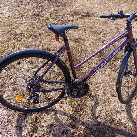 Hyvässä kunnossa oleva naistenpyörä etukortilla. Kaikki toimii, siitä seuraavalle hyvä pyörä moneksi vuodeksi. Suomessa tehty.