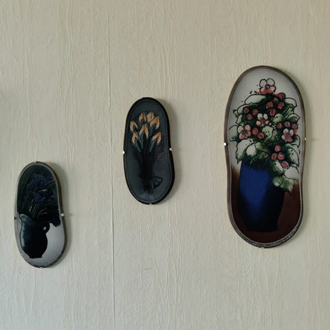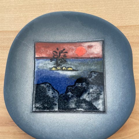 Arabian rintaneula, lasitettu keramiikka. Design Heljä Liukko-Sundström.
