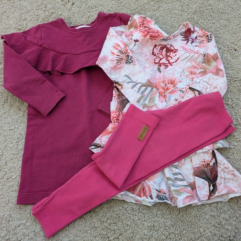 Gugguun mekkoja 3kpl, gugguu toppi ja kappahl caprilegginsit. Kaikki kokoa 98cm. Uutena ostettu, yhdellä käytetty. Siistit seuraavalle!