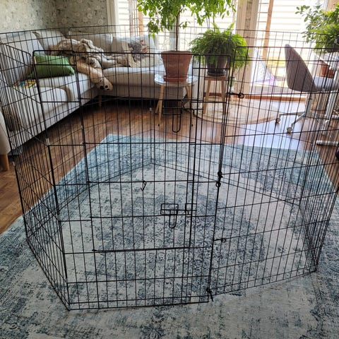 Myydään Little&Biggerin pentuaitaus. Saa moneen eri malliin ja muottiin taiteltua. Suljettava ovi-aukko.