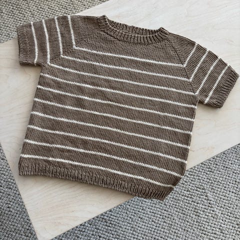 Kesään sopivasta langasta neulottu raitaneule. Muutamasti käytetty. Voi pestä pesukoneessa, joten helppo neule käyttöön. Lankana Sandnes Garn Line (53% puuvilla, 33 % viskoosi, 14 % pellava).