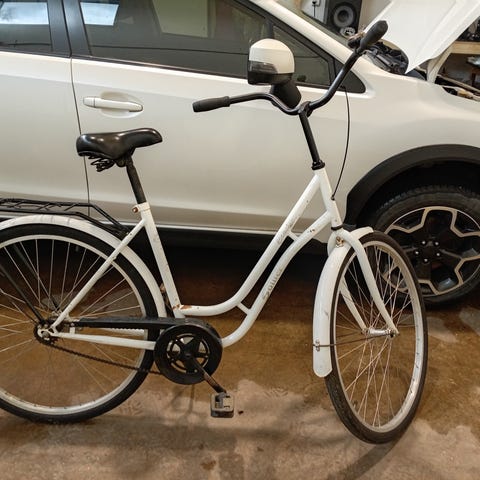 Naisten kaupunkipyörä, jossa 28" renkaat ja L-kokoinen runko. Kolmivaihteinen. Pyörässä on matala runko helpottamaan kyytiin nousua, etukori kuljetusta varten sekä takatavarateline. Satula ja kädensijat ovat ruskeat, runko on valkoinen. Sopii kaupunki- ja asiointiajoon. Ollu käytössä yhden kesän. Hinta 240€/tee tarjous