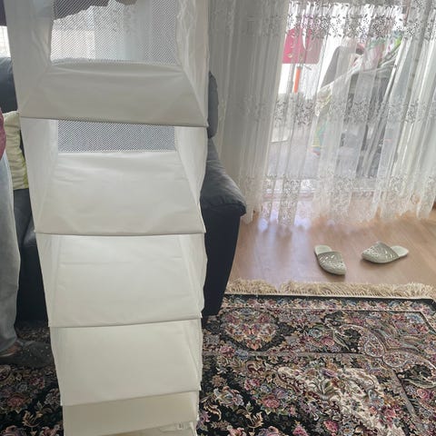 Ollut käytössä kengillä eteisen naulakossa tarrakiinnityksellä. Ehjä mutta kaipaa puhdistusta.