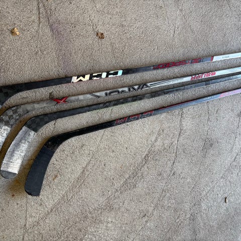 Jääkiekkomailoja Left. Kaikki kuvan mailat kuuluvat hintaan.