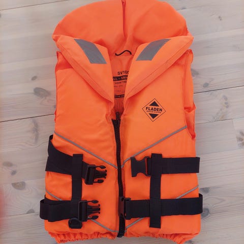 Myydään käytetty hyväkuntoinen oranssi pelastusliivi 40-60 kiloisille henkilöille.