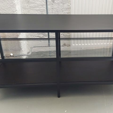 Vittsjö hylly, joka toimii mainiosti TV-tasona, kukkapöytänä tai pienenä kirjahyllynä. Ala-ja ylätasot valkoista levyä, keskihylly lasia, runko metallia. Lemmikkikoti. Nouto Rajamäki.