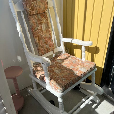 HT Collection klassikko Swing-keinutuoli. Harmaa, monisävyinen kangasverhoilu. Irrotettava istuintyyny. Tosi hyvä istua.