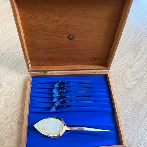 Kakkulapio ja 6 kpl lusikoita hopeaa.