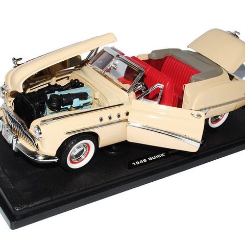 Buick Roadmaster pienoismalli 1:18 musta–punainen. Pienoismalli esittää klassista Buick-avokattoautoa kaksivärisellä korilla, mustalla ja punaisella. Sisusta on vaalea ja yksityiskohtaisesti toteutettu. Mallissa on krominvärisiä yksityiskohtia, kuten puskurit, maski ja vanteet. Ovet ovat avattavat ja ohjaamossa näkyy ohjauspyörä sekä istuimet. Sopii esimerkiksi keräilyyn, esille vitriiniin tai rekvisiitaksi.