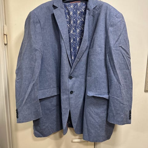 Rento miesten BUZO Special -bleiseri, ruskea. 75 % puuvillaa, 25 % pellavaa. Tuotelapussa lukee DO 120, joka ilmeisesti tarkoittaa rinnanympärystä. Bleiserin mitta kainalosta toiseen on n. 60 cm. Siisti ja hyväkuntoinen.