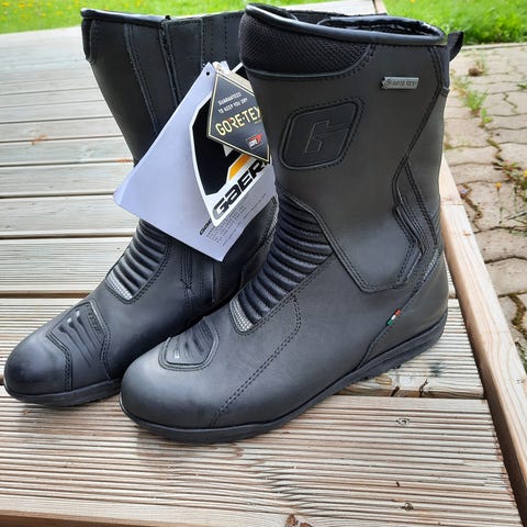 Gaerne G-Midland ajosaappaat, koko 43. Väri musta ja materiaali pääosin nahkaa. Saappaissa on korkea varsi, useita solkikiristyksiä ja vahvistuksia mm. nilkan ja vaihdepolkimen kohdalla. Sisäpuolella on hengittävä vuori. CE-hyväksyntä EN 13634:2010 -standardin mukaan. Soveltuvat moottoripyöräkäyttöön ja touring- / adventure-tyyppiseen ajoon.