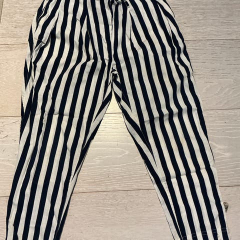Ylhäällä reunoissa 134 cm H&M. Oikeen puoleisessa leveät lahkeet.