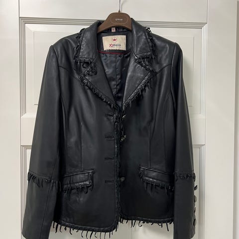Jofaman nahkatakki kokoa 38-40. Ei käytön jälkiä, hieno kunto! Malli menee rintavallekin. Takapituus 62 cm, kainalo-kainalo 50 ja hartialeveys 40 cm.
