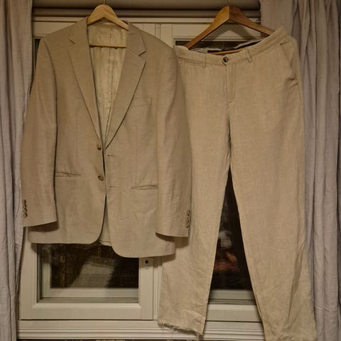 Zara chino-housut miehille, koko EUR 42 (US 32). Väri beige. Materiaali 100% pellavaa. Edessä vetoketju ja nappikiinnitys sekä vyölenkit. Sivutaskut edessä ja napittomat paspoalitetut taskut takana. Sopivat arki- ja vapaa-ajan käyttöön lämpimään säähän.
