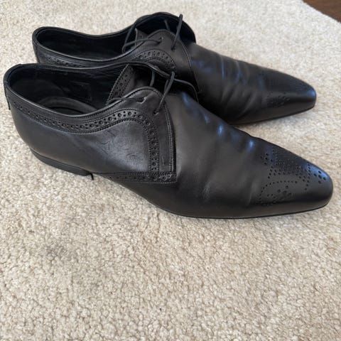 Louis Vuitton loaferit, mustaa nahkaa, koko 10 / 44. Käytetty muutama kerta, kenkien kärjessä alla pientä kulumaa mikä tyypillistä tämän tyyppisille kengille. Yleisilmeltään virheettömät.