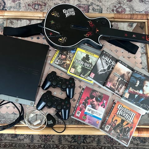 Sony Playstation 3 -pelikonsoli. Mukana virtajohto, AV-/HDMI-kaapeleita, yksi ohjain, SingStar-vastaanotin sekä kaksi langatonta SingStar-mikrofonia. Mukaan myös PS3-pelejä, kuten SingStar Suomi -sarjan pelejä ja muita pelejä. Konsoli on alustettu ja toimiva. 95€/tarjoa
