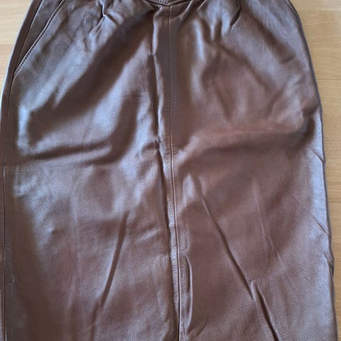 Jonkun itse tekemä nahkahame, ei koko merkintää. Vyötärön ympärys n 90 cm. Edessä taskut, helma hieman levenevä. Osa paloista on aitoa nahkaa, osa keinonahkaa, joissain keinonahka paloissa hieman kulumaa (Näkyy lähikuvassa) ja tämä huomioitu hinnassa. Maksu tilille etukäteen, postikulut lisätään hintaan.