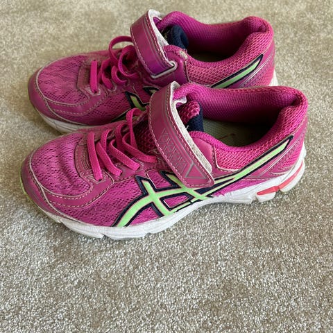 Asics lasten lenkkarit. Koko 31,5. Sisäpohjan pituus 19,5cm. Väritys musta neonkeltaisin yksityiskohdin. Siisti käytetty kunto, pientä käytön jälkeä näkyy kuvassa.