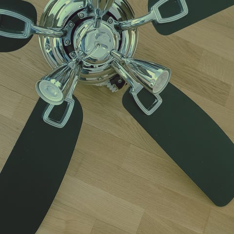 Kattotuuletin valaisimella puunsävyiset lavat