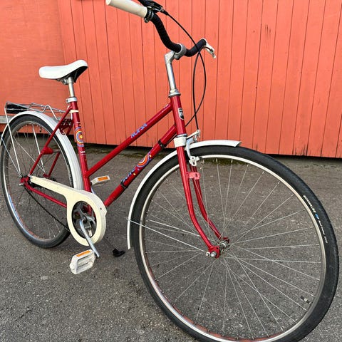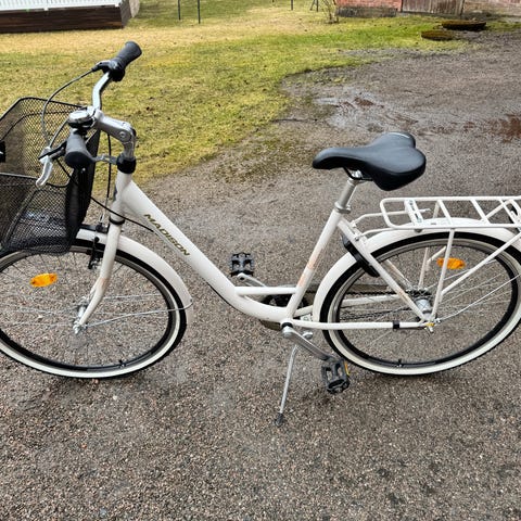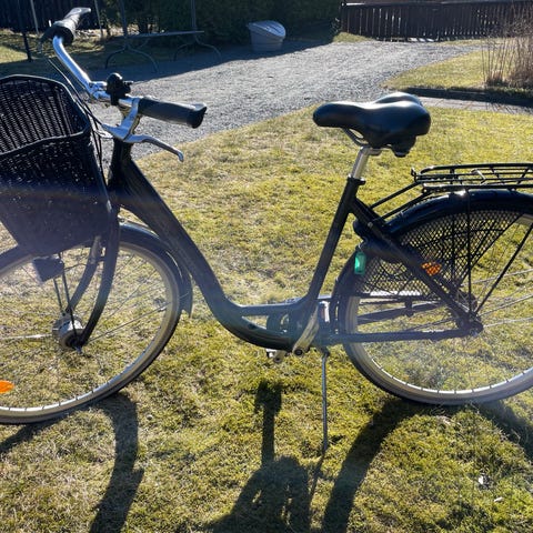DBS Classic City kaupunkipyörä naisten rungolla. Runkokoko 53 cm ja 28" (700c) -kokoiset renkaat. Pyörässä on etukori, takatavarateline sekä runkolukko. Ohjaustangossa on vaihdevipu, jossa merkitty vaihteet 1–4. Rungossa merkintä "High Tension" ja valmistusmaa Norja. Soveltuu arkiseen ajoon kaupungissa ja asiointimatkoille.lisäksi uudet sisäkumit ja uusi takapäälirengas.