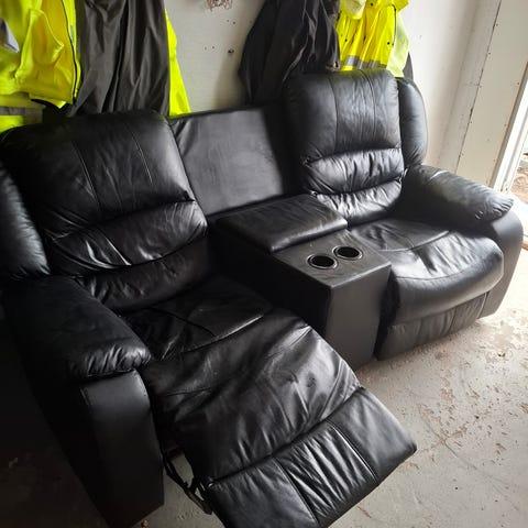Myydään Sotkasta ostettu musta 3 hengen mekanismisohva. Sohvan istuinosat ovat aitoa nahkaa. Keskellä esiinvedettävä pöytä, jossa mukisyvennykset kahdelle. Sohvassa on mekanismilla toimivat jalkatuet kahdelle. Sohvan saa jaettua kolmeen osaan. Vain nouto.
