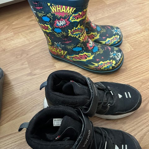 Hyväkuntoisia välikausikenkiä ja kuomat sekä kumpparit kaupanpäälle. Hinta yhteensä kaikki 15€ tai 5€/pari