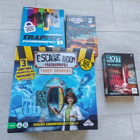 Myydään Escape Room Peli -lautapelit. Pelattavissa uudelleen kertakäyttöisetkin osat. 3e kpl tai kaikki 10e