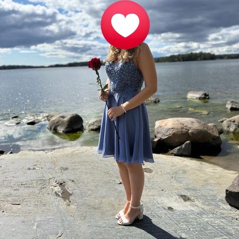 Myydään Haloselta (hinta 219,90e) vuosi sitten ostettu upea sininen, satiininen Dazzling Zazabella juhlamekko koko 36.