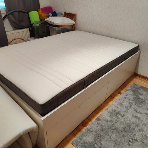 (Varattu!) IKEA Neiden sänkyrunko, VESTMARKA joustinpatja ja JYSKin Dreamzone sijauspatja.