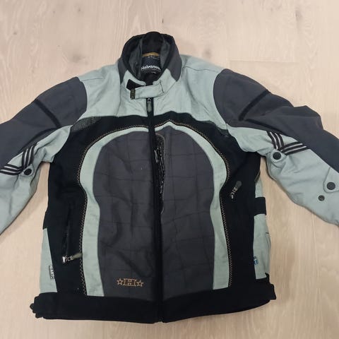MP-ASU moottoripyörätakki, koko M. Takki on musta-harmaa tekstiilitakki, jossa on useita säätöremmejä vyötäröllä ja hihoissa istuvuuden parantamiseksi. Materiaalina on kestävä tekstiili, jossa on Kodura CE-protector -suojaukset käsivarsissa. Takissa on vetoketjuja ilmanvaihtoa varten sekä heijastavia tereitä näkyvyyden parantamiseksi. Soveltuu moottoripyöräkäyttöön. Koko ja muut yksityiskohdat näkyvät kuvissa.