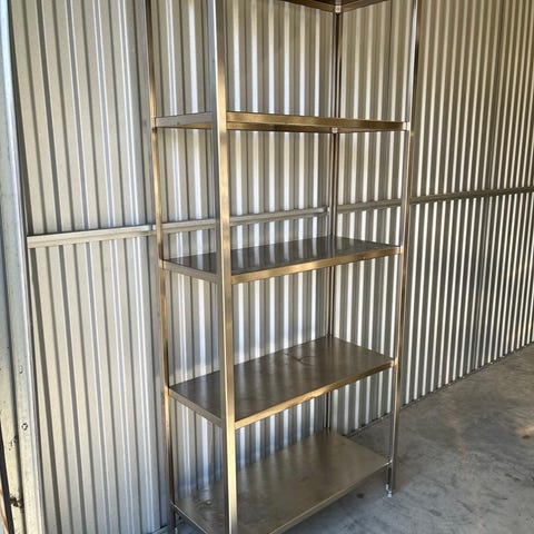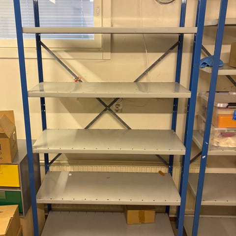 Rosterinen hyllykkö, soveltuu erinomaisesti varastoon, autotalliin tai työtilaan. Hyllyssä on säädettävät jalat, joiden avulla sen saa tasapainoon epätasaisellakin lattialla.