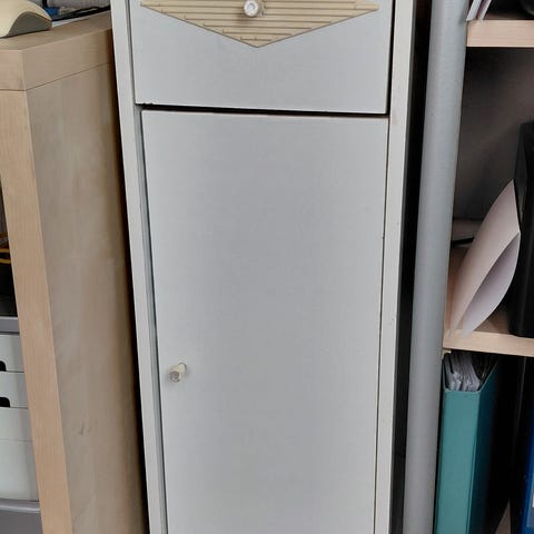 Myydään valkoinen kaappi, jossa on ylhäällä avointa säilytystilaa ja alhaalla kaapin ovien takana umpinaista säilytystilaa. Kaapin takaosassa on pieni reikä (näkyy kuvassa). Myydään muuton tieltä. Nouto Helsingin Jätkäsaaresta.