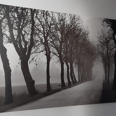 IKEA taulu, jossa hirviaiheinen valokuvaprintti sumuisessa maisemassa. Kanvastaulu, jonka voi tarvittaessa purkaa osiin. Mitat 140 x 200 cm