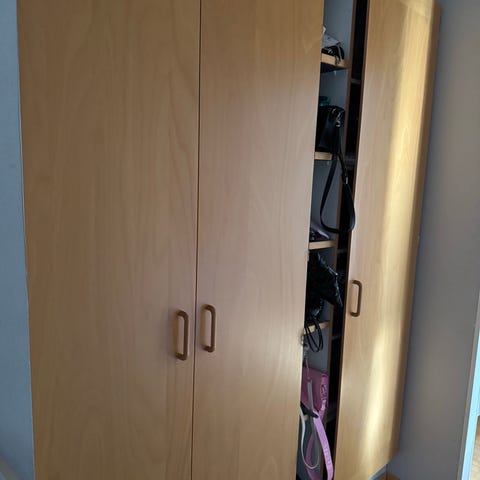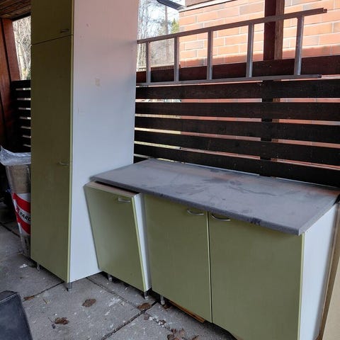 99 asennetut kodinhoitohuoneen kaapistot. Eilen 7.4. nostettu ulkokatokseen