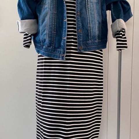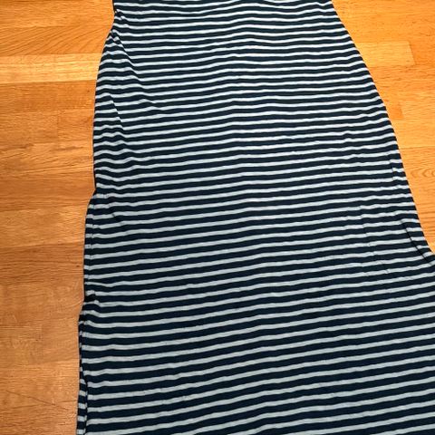 Esprit naisten kesämekko koossa XL. Mekossa on hihaton yläosa, jossa on vaakaraitakuosi, ja yksivärinen alaosa. Väri on kirjava, pääsävyinä tummansininen ja vaalea. Sopii arki- ja vapaa-ajan käyttöön lämpimään säähän.
