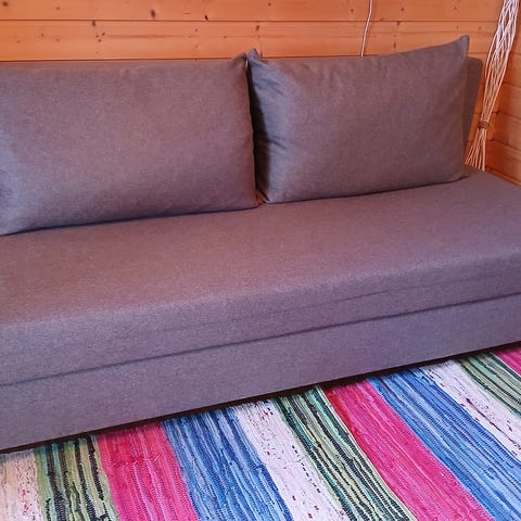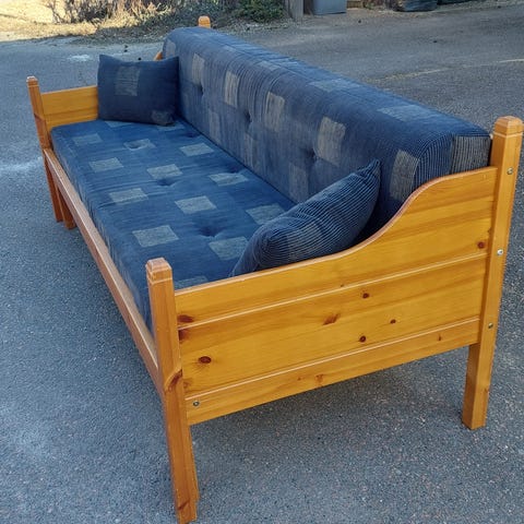 Myydään vuodesohva, mäntyä. Vuodevaatelaatikko. Taittopatja.