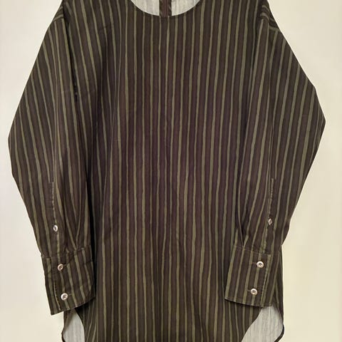 Marimekon vuorellinen tunika, koko 36, mittoja: kainalo-kainalo 47 cm, olka-helma 76 cm. Lyhyet halkiot molemmin puolin helmassa. Ollut vähäisessä käytössä.