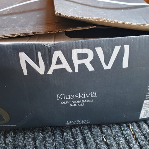 Narvi kiukaan kiuaskivet oliviinidiabaasista. Kivien koko noin 5–10 cm, soveltuvat erityisesti sähkökiukaisiin. Yksi laatikko sisältää noin 20 kg kiuaskiviä.