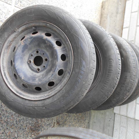 C-luokan kesärenkaat vanteilla, urasyvyyttä n. 5 mm. Renkaat Ylämyllyllä.