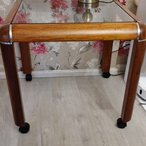 Myydään jykevä ja laadukas sivupöytä, Meksikolaista kierrätyspuuta. Täyspuinen siis. Messinkivetimet.